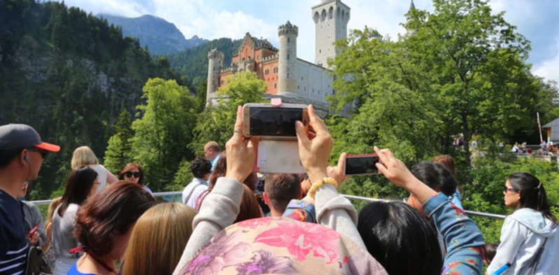 The difference between normal summer Bavarian Summer and Summer 2020 is best displayed visually. This is how walking up to Neuschwanstein looks like normally and what it was like when we visited midday last week: